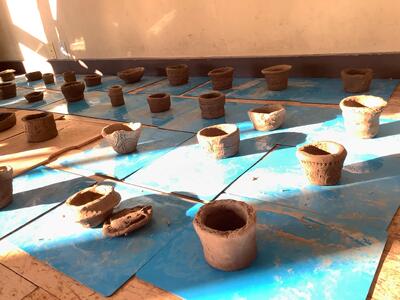 七ヶ浜歴史資料館の方々にきていただき、「縄文土器作り」を体験しました。