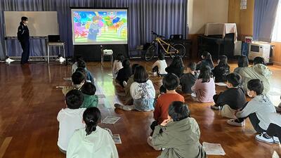 4年生は自転車安全の利用五則を学びました。4月から自転車利用者は,ヘルメットをかぶるように努めなければなりません。子供たちにも「ヘルメットをかぶるよう心掛けていきたい」「持ってないから買ってもらおうと思う」など,たくさんの感想を発表していました。自転車の点検要領「ぶ た は しゃ べ る」は,ある単語の頭文字からとっています。何の言葉か,ぜひお子様と一緒に考えてみてください。