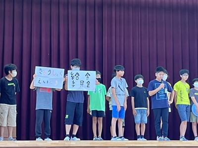 8名の代表の言葉からスタートし,全校児童の聴く姿勢,心と目は3年生に向けられました。