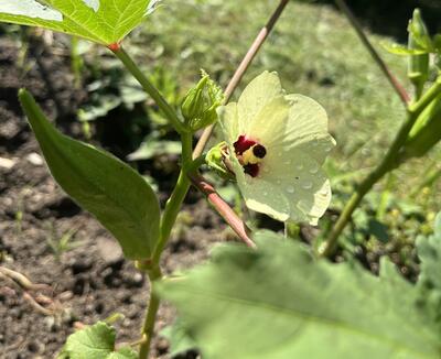 オクラの花がきれいに咲きました。オクラも食べ頃の大きさに生長しました。