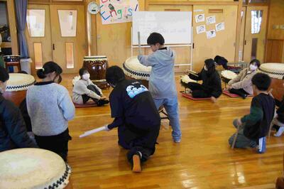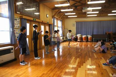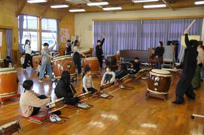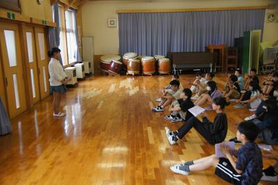 今日は地域の太鼓団体「はまかぜ太鼓」の皆さんが、次年度の松小太鼓を担う5年生に指導に来てくださいました。基本的なばちの持ち方、よく響く叩き方、移動の仕方などを実演しながら教えてくださいました。見本として叩く音の響きはやっぱり段違いで、子供たちからは(おぉ…)と、声にならないような感嘆の声が漏れていました。5年生の演奏を「とてもうまい!」と褒めていただいたので、この先が楽しみです。まつかぜ太鼓の皆さん、ありがとうございました。