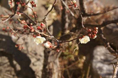 この暖かさで、昇降口横にある梅が2~3輪だけ咲いていました。ほっこりします。