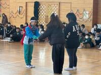 各学年からの感謝の出し物があり、松小太鼓の引継ぎ、児童会の引継ぎ、そして6年生からはお返しの歌を贈ってもらいました。