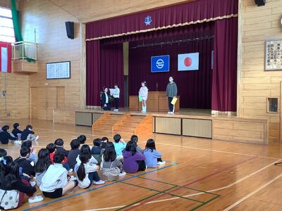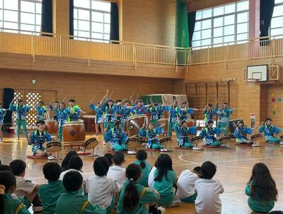 そして、会の中で楽しい学校紹介をした5年生。迫力満点の松小太鼓を披露した6年生。