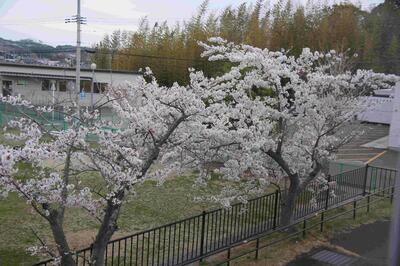 始業式・入学式の日にタイミングよく咲き始めた校庭の桜が満開です。