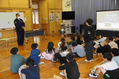 1年生は警察の方と見守り隊の方のご協力をいただき、信号のある交差点を渡るなど、実際に外歩きで体験的に学び、4年生は警察の方の話を聞いて学びました。その他の学年はDVDを見るなどして、それぞれ教室で学びました。今日の学びを生活の中でしっかり実践し、事故なく過ごしてくれることを切に願います。