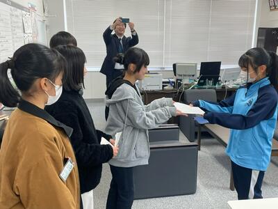 集まった募金は、2/20(火)に計画委員の6年生が中学校へ届けてきました。