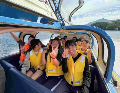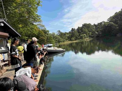 <檜原湖でモーターボート体験>