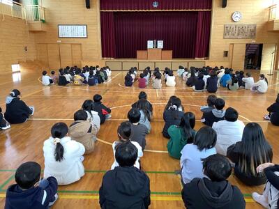 明日からは、子供たちが待ちに待った冬休み。今朝は「冬休み前集会」を開きました。